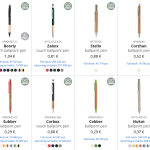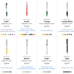 Apskati mūsu pildspalvu sortimentu, izvēloties sev vajadzīgo sūti mums uz e-pastu pildspalvas individuālo kodu, kas atrodas zem katras pildspalvas, un norādi konkrētu skaitu vai skaitus kurus interesē apdrukāt. Pievieno e-pastam arī uzņēmuma logo vai nepieciešamo tekstu. Mēs sagatavosim vizualizāciju un apdrukas cenas aprēķinu. Lielākajai daļai pildspalvu minimālais apdrukas apjoms ir 100gb, vēl labāka apdrukas cena ir sākot no 300gb.